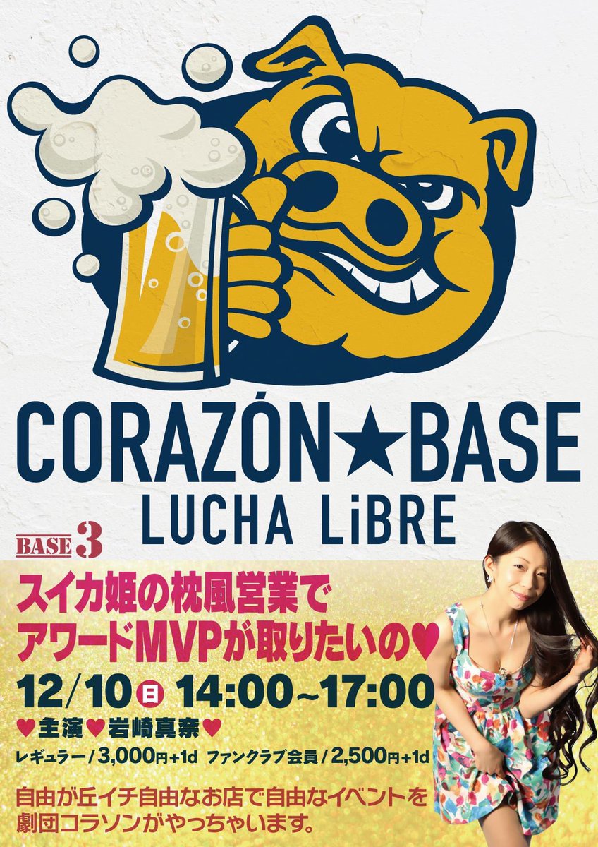 コラソンBARルチャリブレにて開催する劇団コラソン新ブランド『CORAZON☆BASE』第3回めの開催が決定。