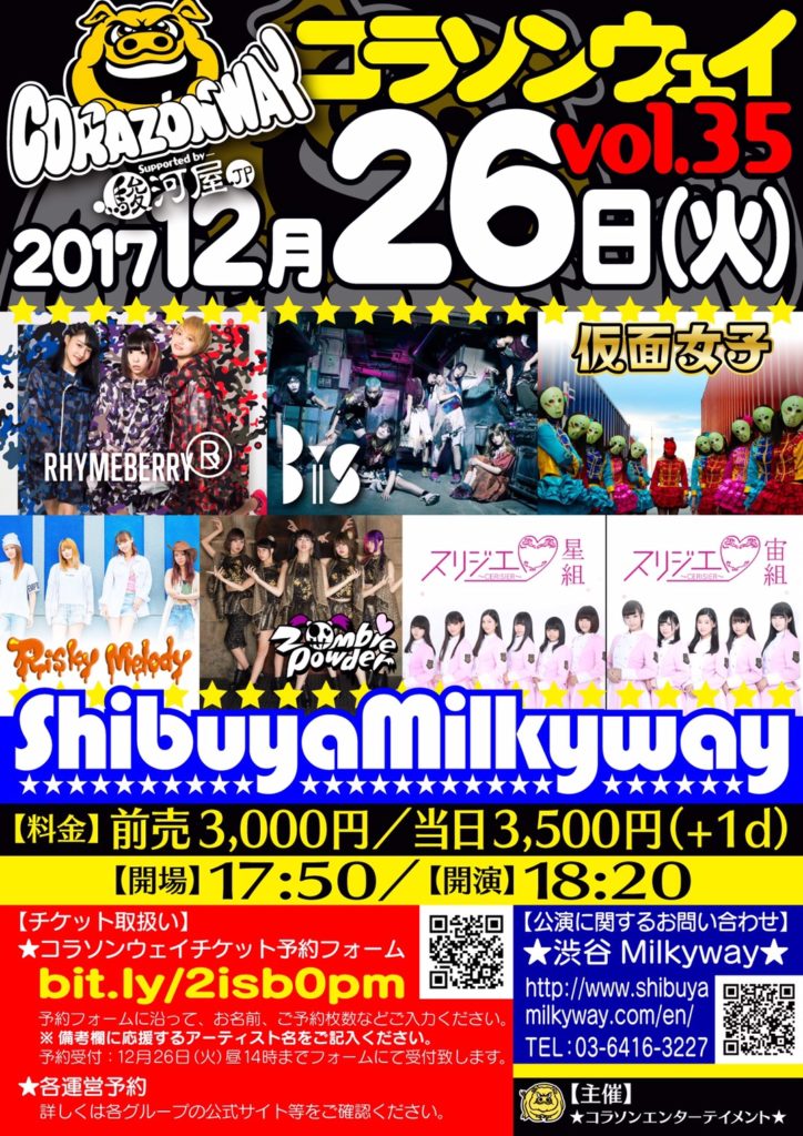 12月26日(火)『コラソンウェイvol.35 Supported by 駿河屋』@渋谷ミルキーウェイにて開催いたします。