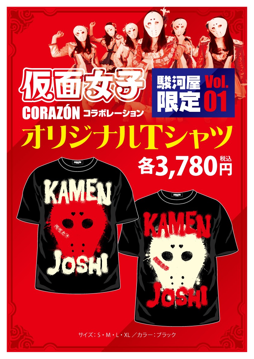 第1弾『KAMEN JOSHI Tシャツ』は駿河屋オンラインショップおよび一部駿河屋店舗にて2月16日(金)より販売開始予定。